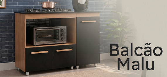 Balcão de Cozinha Fabi Para Fogão Cooktop 5 Bocas Móvel Armário Funcional Savana Preto Mobília Decor