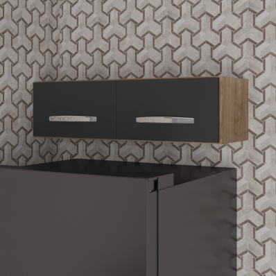 Armário Suspenso Aéreo de Geladeira Modulado Cozinha Lavanderia Área de serviço Luna Savana e Preto