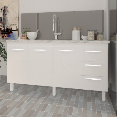 Balcão Armário Cozinha Gabinete para Pia 148 cm 3 Gavetas e 3 Portas Deise Branco