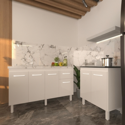 Balcão Armário Gabinete Para Pia 138 cm Camila e Balcão Fran Para Cooktop 4 Bocas Branco