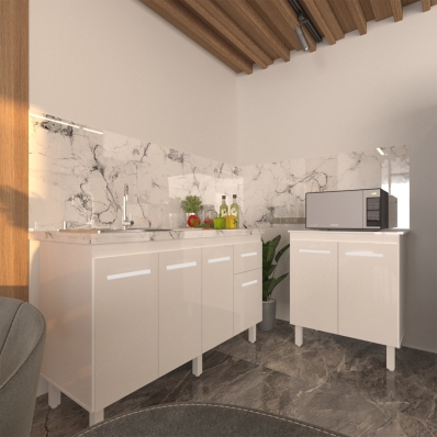 Balcão Armário Gabinete Para Pia 138 cm Camila e Balcão Para Microondas ou Forno Elétrico Jane Branco