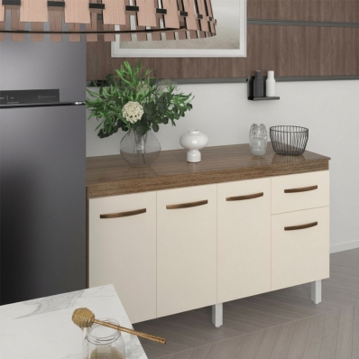 Balcão Cozinha Armário Gabinete Camila Savana Off White Com Tampo Tampão 140 cm Mobília Decor Savana