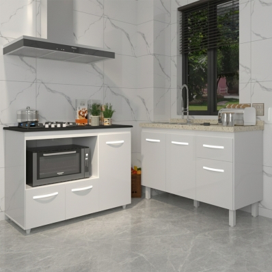 Transforme sua cozinha com o Kit Balcão para Pia 118 cm Aline e Balcão para Cooktop 4 Bocas Alana! |