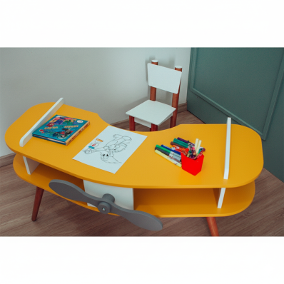 Mesa Avião Amarelo com Cadeira e Hélice e Pés Palito Design Criativo Mesa Desenho Quarto Menina Menino Infantil Decor