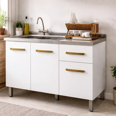 Balcão Gabinete De Cozinha para pia de 1,20 Multiuso 3 Portas Móvel Armário De Pia Bancada Organizador Branco