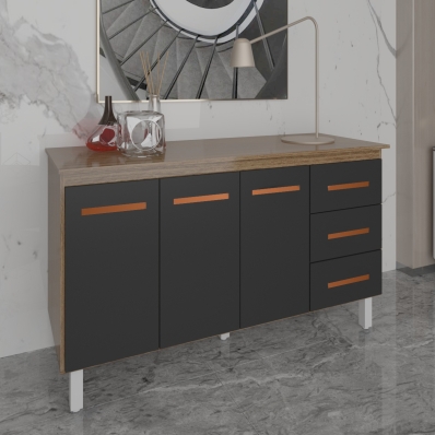 Armário Deise Cozinha Gabinete de Pia 150 cm Savana Preto e Tampo Tampão 150 cm Mobília Decor Savana