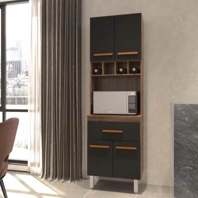 Armário Paneleiro Vivian com Adega 4 Portas 1 Gaveta Cozinha Compacta Savana Preto