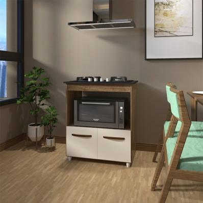 Balcão Armário de Cozinha para Fogão Cooktop 4 Bocas e Forno Elétrico Evelyn Mobília Decor Savana Off White