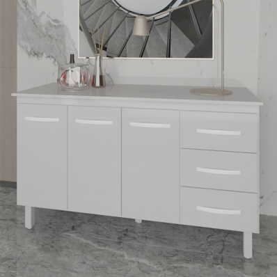 Balcão Gabinete Armário Cozinha Carine Branco com Tampo Tampão 140 cm Mobília Decor Branco