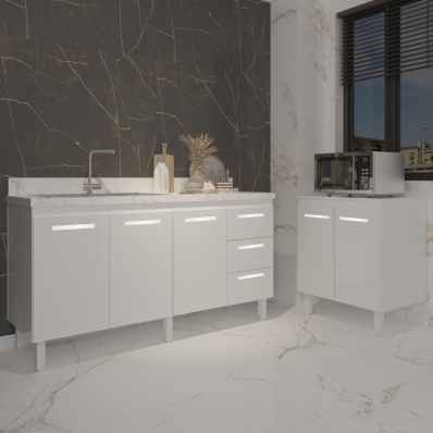 Cozinha Balcão Armário Gabinete de Pia 150 cm Deise e Balcão Jane para Microondas ou Forno Elétrico Branco
